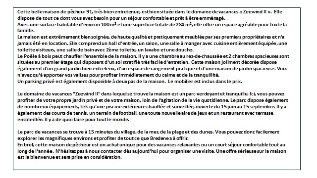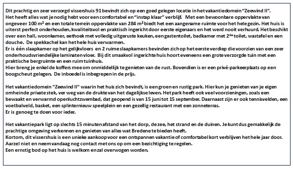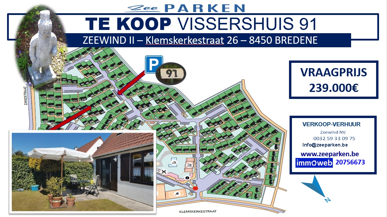 TE KOOP VISSERSHUIS 21.091 – VAKANTIEDOMEIN “ZEEWIND II” – BREDENE